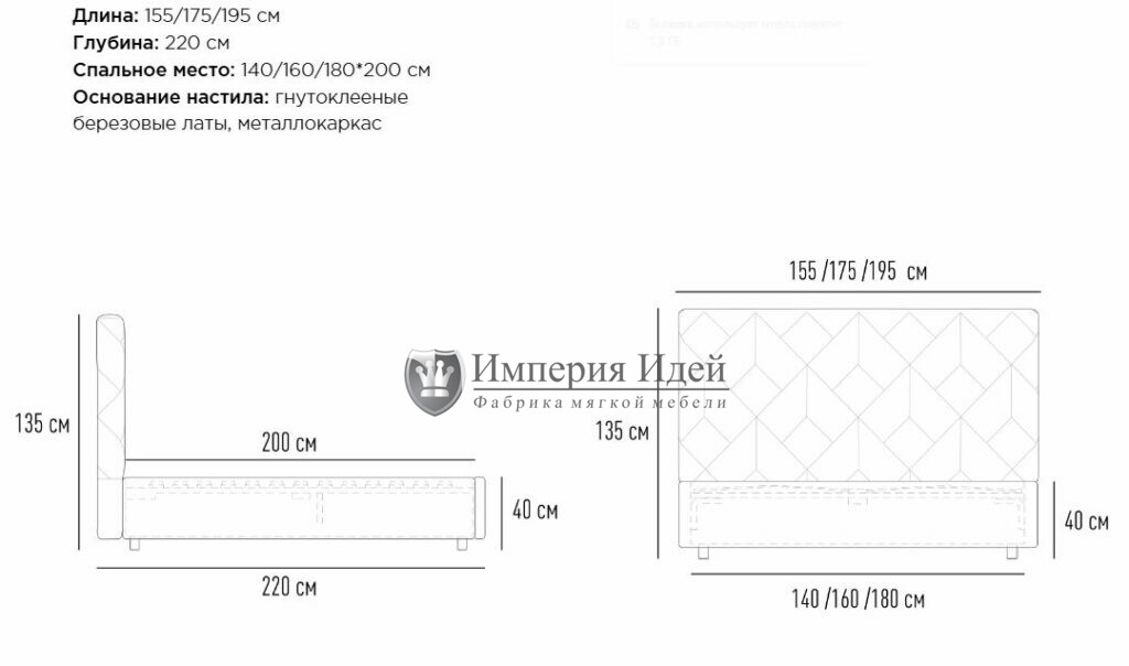 Размеры: 155х220 175х220 195х220